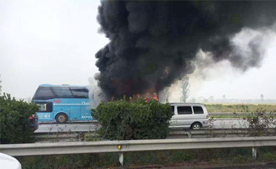 车上发生火灾,烟雾中有大量一氧化碳和其他有害气体,.......